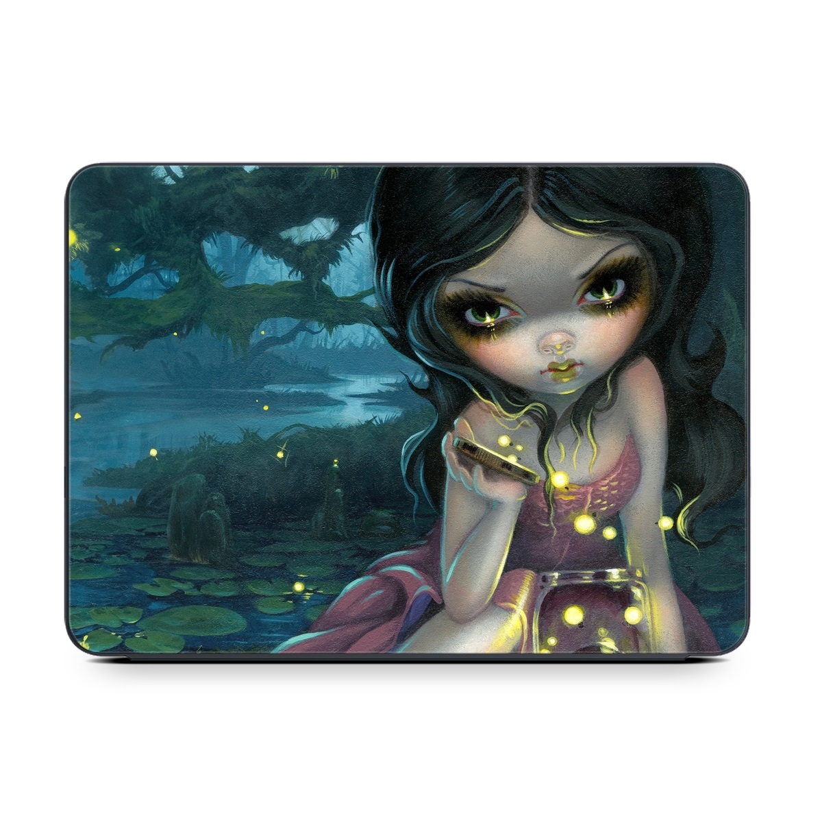 iStyles Smart Keyboard Folio for iPad Series Skin design of Cg artwork, Illustration, Fictional character, Art, Iris, Black hair, Fawn, Mythology, Fiction, with blue, green, pink, yellow, black, white colors, and tagged with people, animals, nature, objects, fantasy, bugs, fantasy, fireflies, swamp.