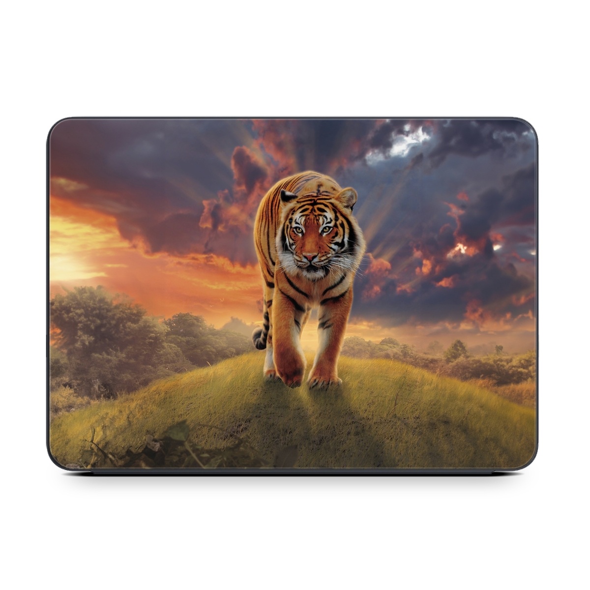 iStyles Smart Keyboard Folio for iPad Series Skin design of Tiger, Wildlife, Bengal tiger, Mammal, Felidae, Siberian tiger, Sky, Big cats, Terrestrial animal, Carnivore, with black, white, yellow, red, green, blue colors, and tagged with animals, nature, animal, nature, sunrise, sunset, tiger, wildlife.