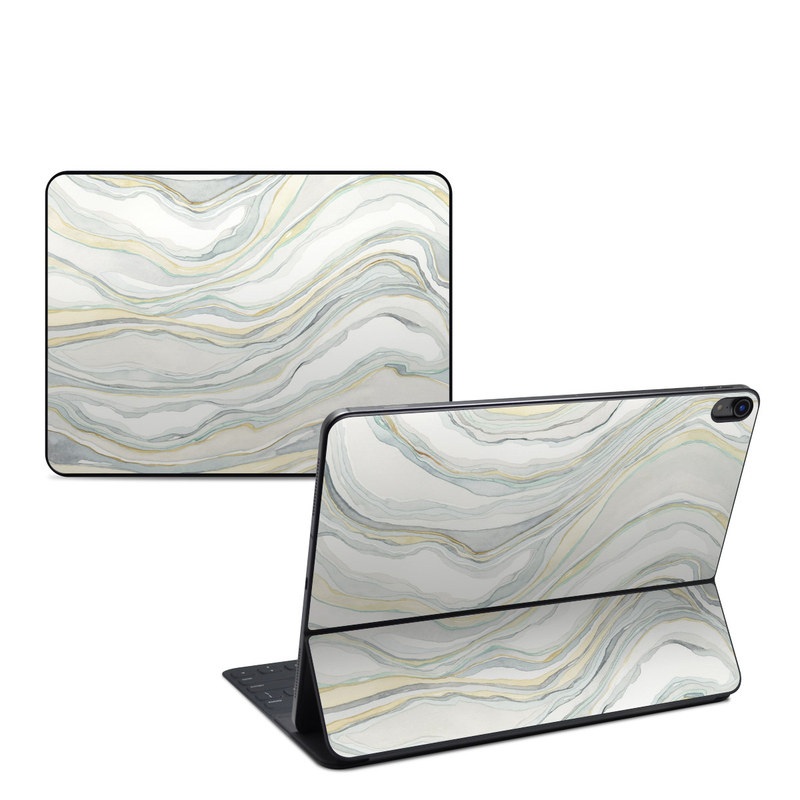 iStyles Smart Keyboard Folio for iPad Series Skin design of Line, Pattern, with yellow, white, blue, gray colors, and tagged with patterns, abstract, earthtones, neutral, watercolor.