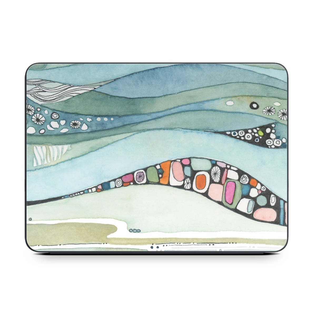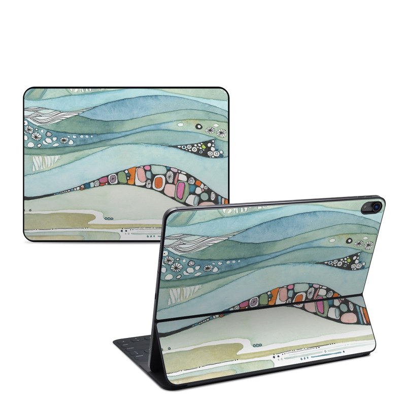 iStyles Smart Keyboard Folio for iPad Series Skin design of Line, Illustration, Art, with blue, green, orange, pink, black, white, yellow colors, and tagged with abstract, flowers, beach, earthtones, neutrals, watercolor, waves.