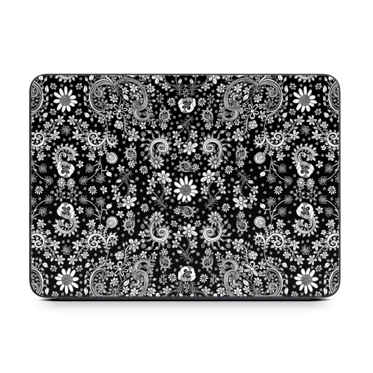 iStyles Smart Keyboard Folio for iPad Series Skin design of Pattern, Monochrome, Design, Black-and-white, Visual arts, Textile, Motif, Monochrome photography, Symmetry, with black, white colors, and tagged with patterns, flowers, blackandwhite, doodles, florals, flowers, sketches.