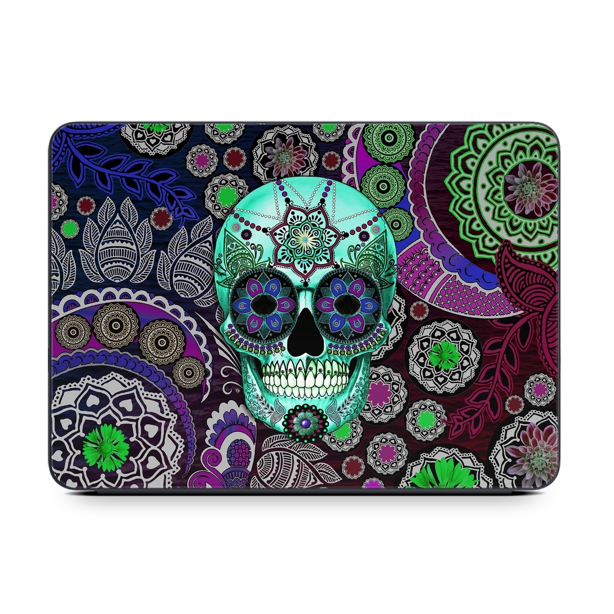 iStyles Smart Keyboard Folio for iPad Series Skin design of Psychedelic art, Pattern, Skull, Purple, Bone, Violet, Design, Visual arts, Art, Magenta, with blue, green, purple, red, green, pink colors, and tagged with skulls, patterns, flowers.