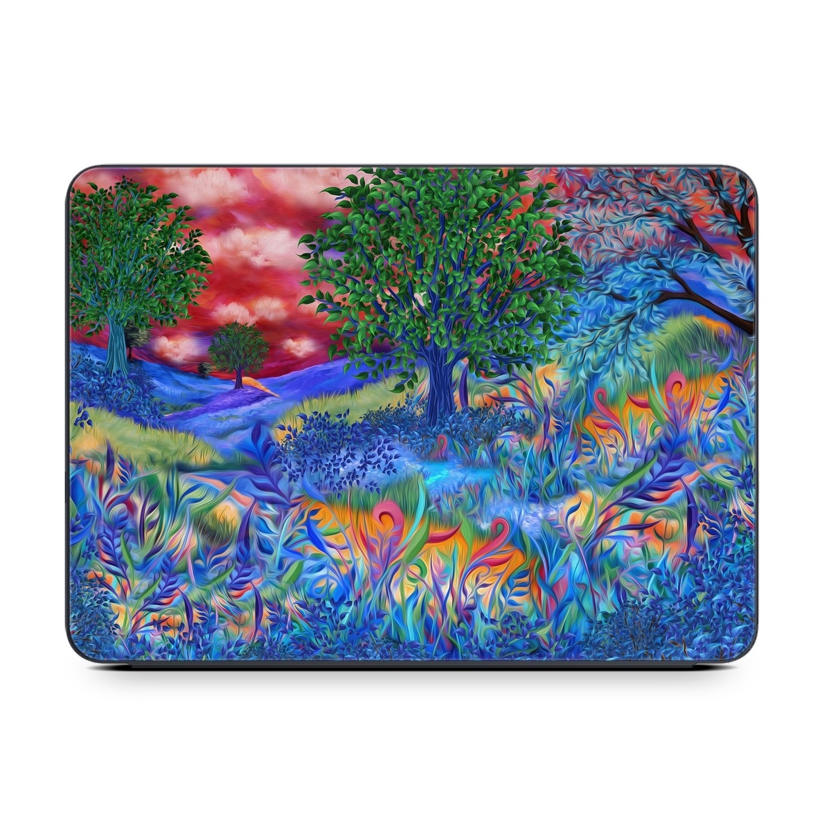 iStyles Smart Keyboard Folio for iPad Series Skin design of Art paint, Plant, Plant community, Paint, Natural landscape, People in nature, Vegetation, Grass, Art, Painting, with blue, red, green, orange, yellow, pink, white colors, and tagged with nature, fineart, blue, field, green, leaf, leaves, meadow, pink, purple, sun, sunset, tree, trees.