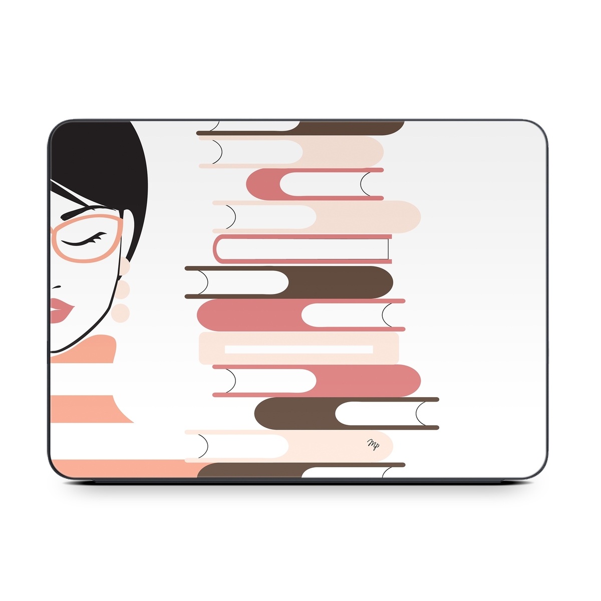 iStyles Smart Keyboard Folio for iPad Series Skin design of Eyebrow, Gesture, Font, Carmine, Graphics, Thumb, Art, Illustration, Graphic design, Lipstick, with white, black, pink, brown, red colors, and tagged with objects, people, patterns, reading, girl, spectacles.