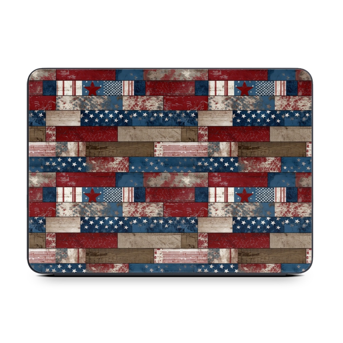 iStyles Smart Keyboard Folio for iPad Series Skin design of Photograph, White, Blue, Rectangle, Azure, Textile, Creative arts, Red, Line, Art, with red, blue, white, brown, gray, black colors, and tagged with flags, patterns, signs, united, states, flag, wooden, panels, mosaic, worn.
