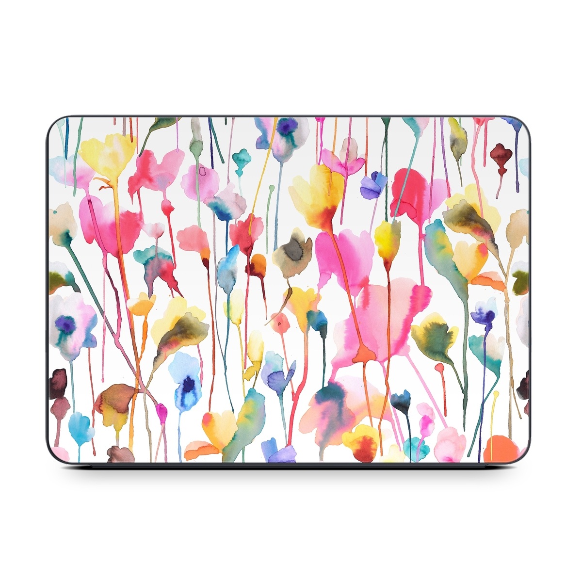 iStyles Smart Keyboard Folio for iPad Series Skin design of Plant, Petal, Art, Font, Pattern, Automotive wheel system, Event, Visual arts, Party supply, Pole, with white, red, pink, yellow, orange, green, blue, purple colors, and tagged with patterns, flowers, color, colorful, flower, flowers, pattern, rainbow, watercolor.