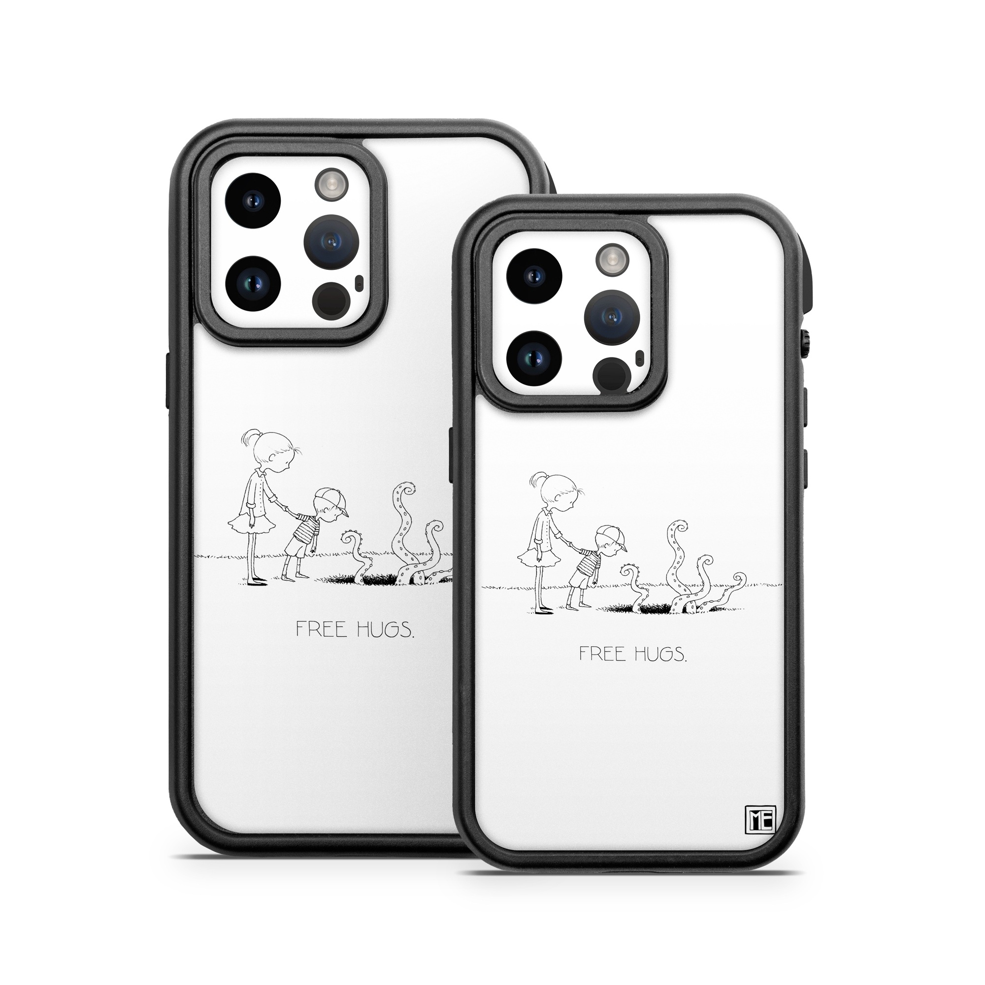 iStyles OtterBox Fre iPhone 14 Series Case Skin design of Line art, Cartoon, Text, Drawing, Illustration, Coloring book, Black-and-white, Child, Art, with black, white colors, and tagged with signs, people, animals, funny, humor, monster.