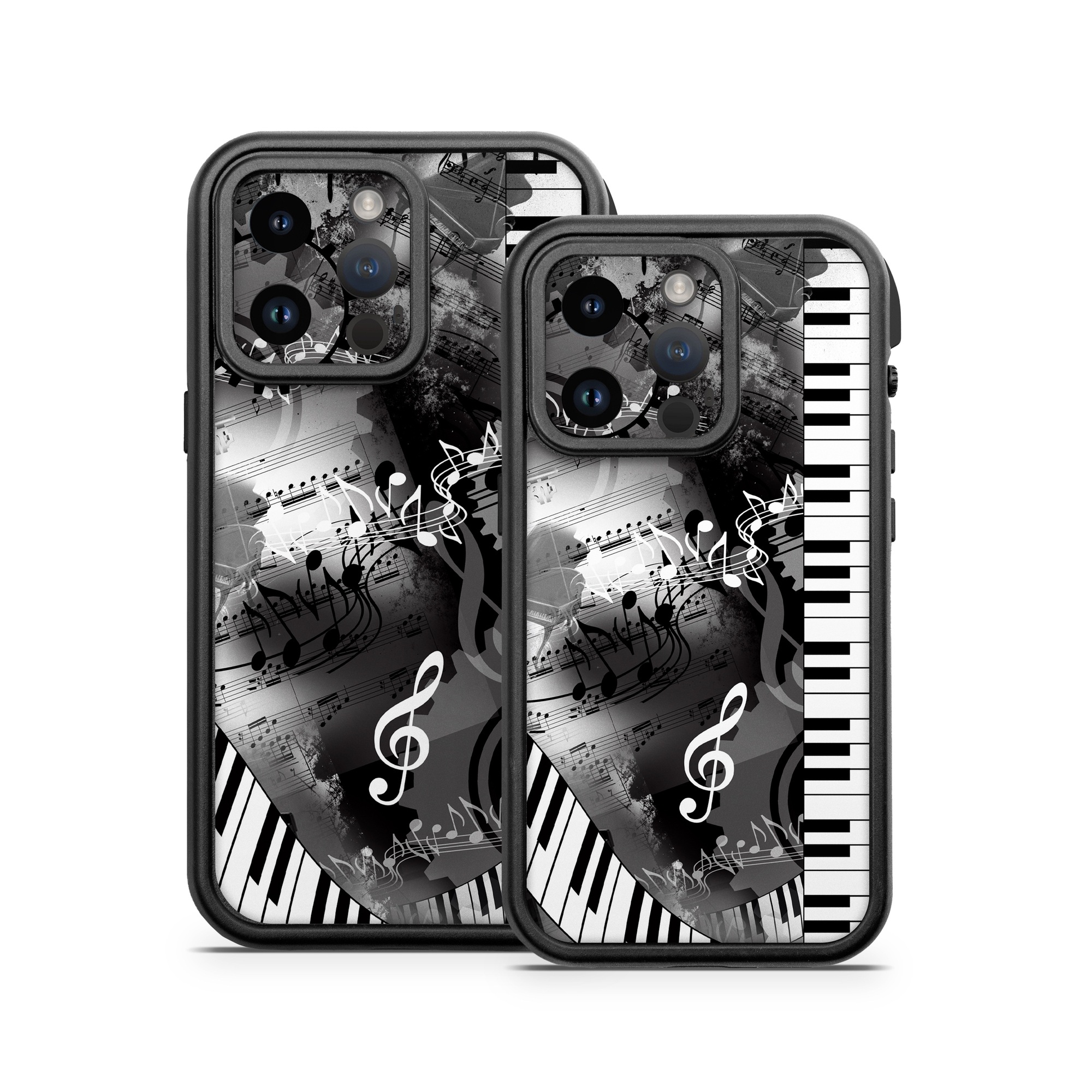 iStyles OtterBox Fre iPhone 14 Series Case Skin design of Music, Monochrome, Black-and-white, Illustration, Graphic design, Musical instrument, Technology, Musical keyboard, Piano, Electronic instrument, with black, gray, white colors, and tagged with patterns, music.