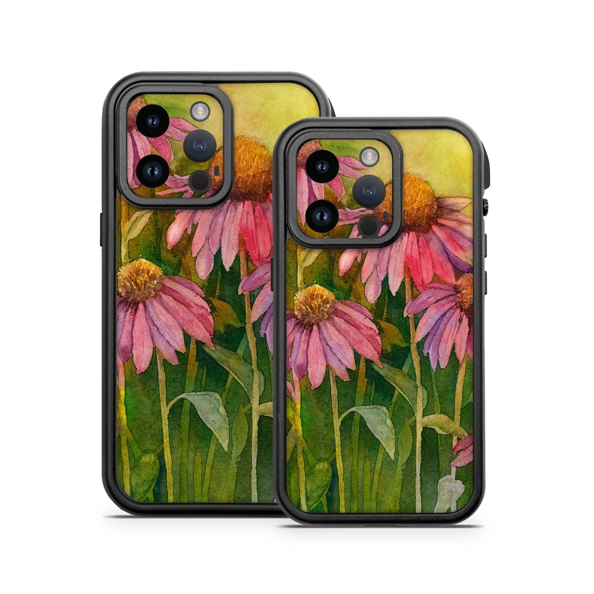 iStyles OtterBox Fre iPhone 14 Series Case Skin design of Flowering plant, Purple coneflower, Coneflower, Flower, Plant, Watercolor paint, Wildflower, black-eyed susan, Petal, Daisy family, with black, green, red, gray, purple colors, and tagged with flowers, fineart.