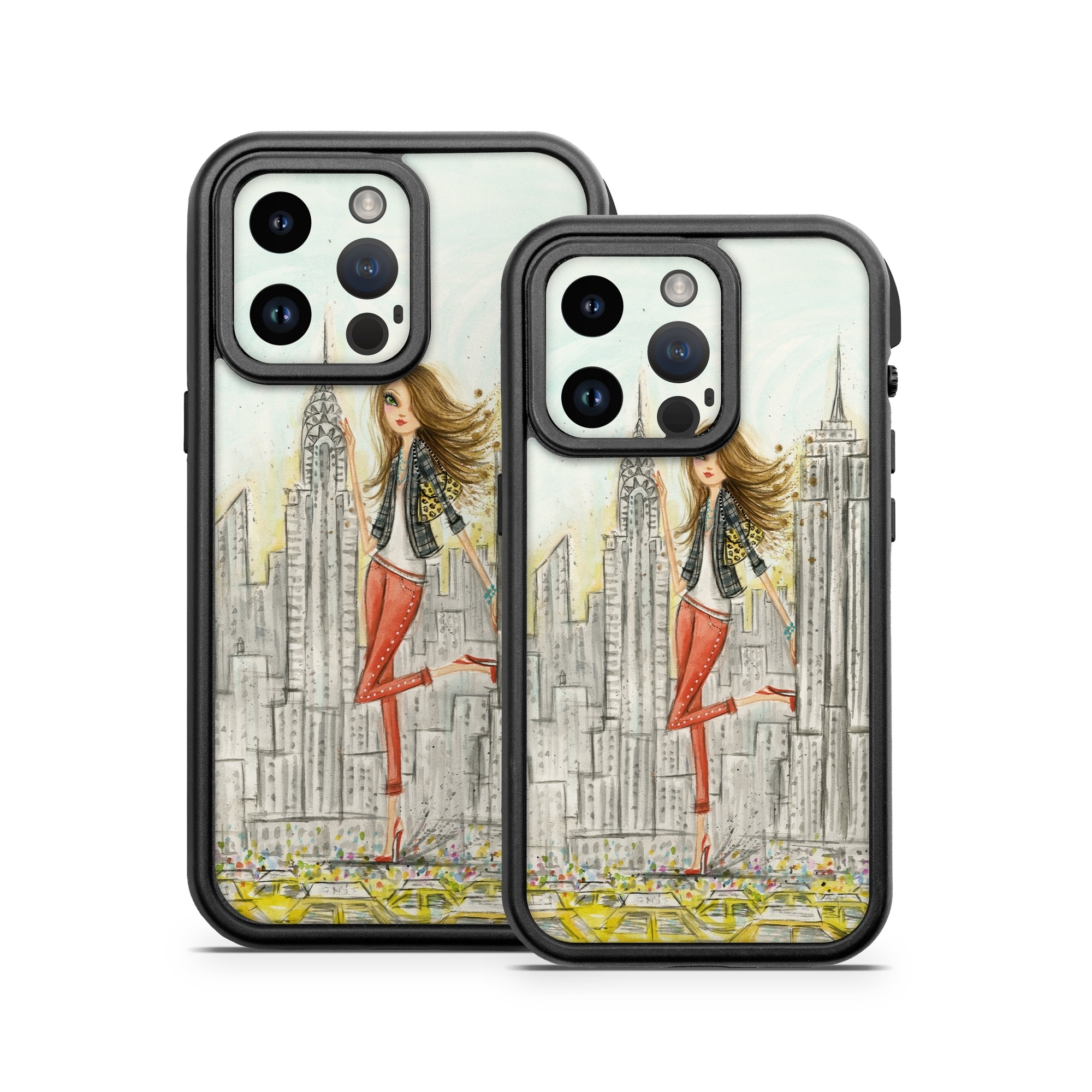 iStyles OtterBox Fre iPhone 14 Series Case Skin design of Human settlement, Fashion illustration, Illustration, City, Art, Architecture, Drawing, Fictional character, with gray, green, black, red colors, and tagged with people, objects, urban, fashion, fineart.
