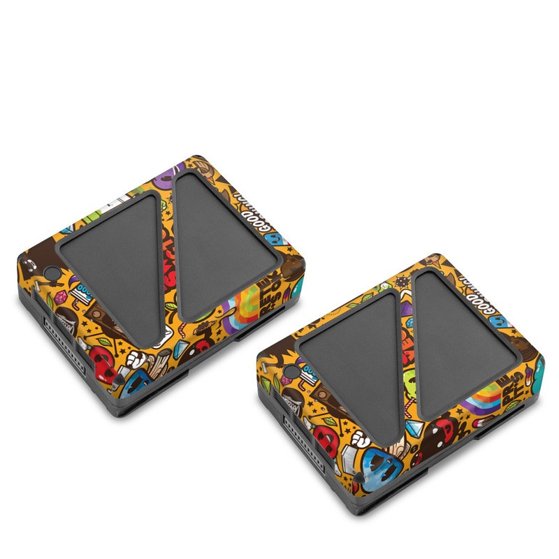 iStyles DJI Inspire 2 Battery Skin design of Pattern, Psychedelic art, Visual arts, Art, Design, Illustration, Graphic design, Doodle, with black, green, red, gray, orange, blue colors, and tagged with abstract, animals, objects, signs.