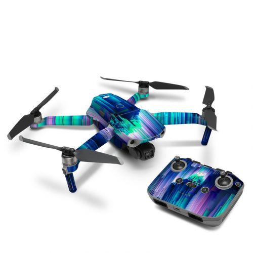 iStyles DJI Mavic Air 2 Battery Skin design of Blue, Green, Light, Colorfulness, with blue, purple, pink, white colors, and tagged with abstract, space, blue, geometric, geometry, glitch, green, lines, matrix, pink, purple, space.