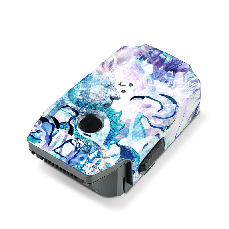 iStyles DJI Mavic Air Battery Skin design of Psychedelic art, Water, Fractal art, Art, Pattern, Graphic design, Design, Illustration, Electric blue, Visual arts, with blue, purple, green, red, gray, white colors, and tagged with animals, nature, flowers.
