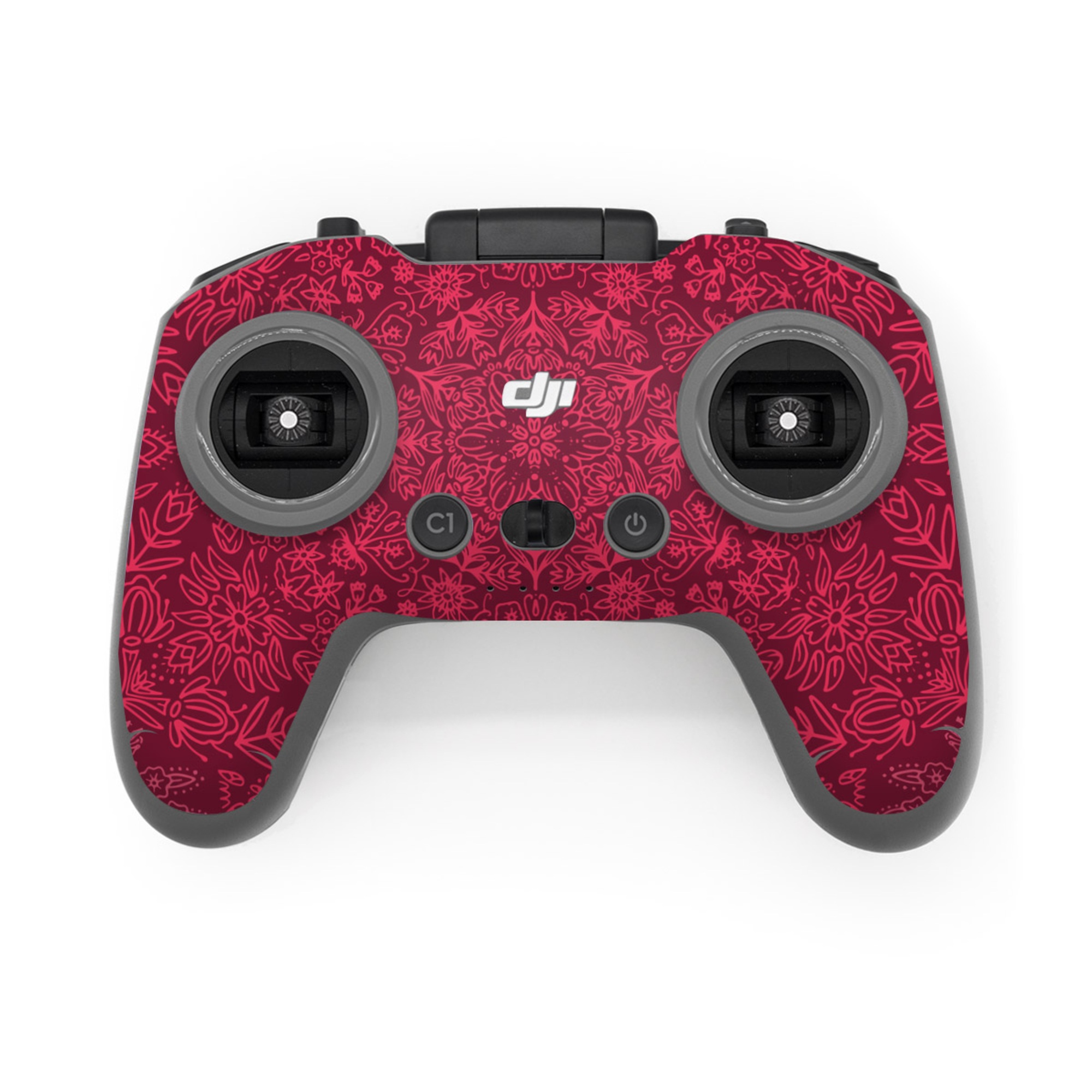 iStyles DJI FPV Remote Controller 3 Skin design of Red, Pattern, Pink, Magenta, Purple, Maroon, Violet, Textile, Design, Wallpaper, with red, black colors, and tagged with patterns, flowers, lookslike, floral, flowers, mandala, red, tapestry.