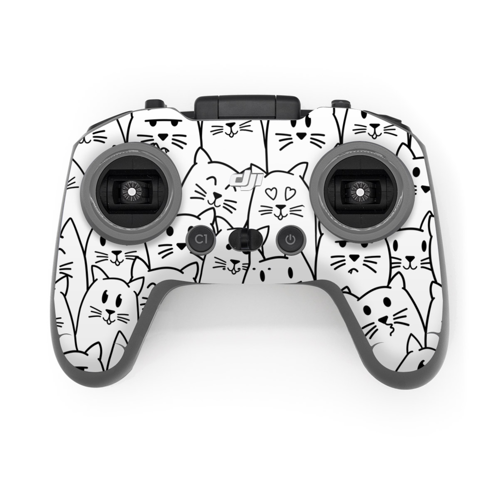 iStyles DJI FPV Remote Controller 3 Skin design of White, Line art, Text, Black, Pattern, Black-and-white, Line, Design, Font, Organism, with white, black colors, and tagged with patterns, animals, animals, cartoon, cats, cute, kitty, lineart, sketch.