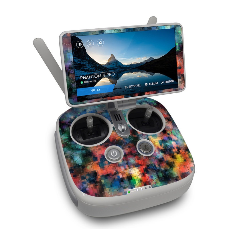 iStyles DJI Phantom 4 Pro Plus Controller Skin design of Blue, Colorfulness, Pattern, Psychedelic art, Art, Sky, Design, Textile, Dye, Modern art, with black, blue, red, gray, green colors, and tagged with patterns, abstract.