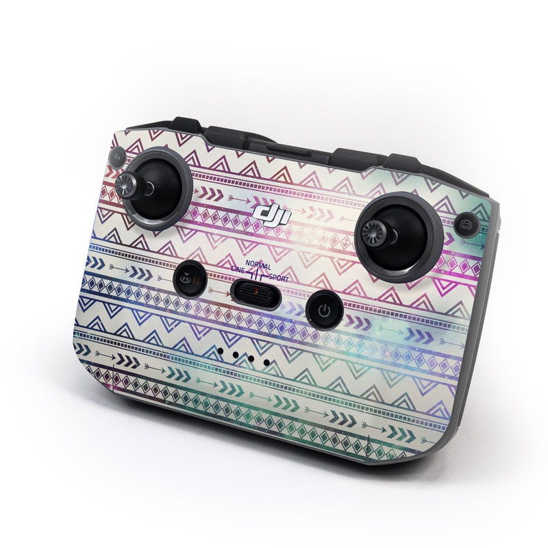 iStyles DJI RC-N1 Controller Skin design of Pattern, Line, Teal, Design, Textile, with gray, pink, yellow, blue, black, purple colors, and tagged with patterns.