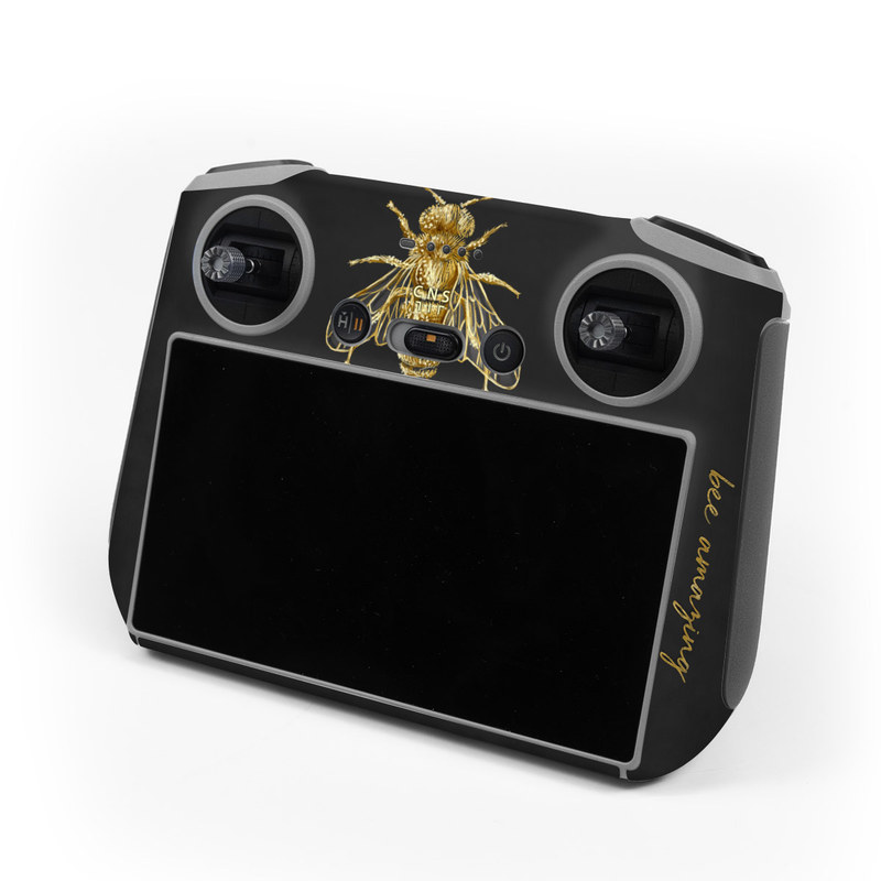 iStyles DJI RC Skin design of Insect, Invertebrate, Membrane-winged insect, Arthropod, Pest, Net-winged insects, Bee, Cicada, Macro photography, Pollinator, with black, yellow, white colors, and tagged with animals, signs, bee, bees, bug, draw, drawing, glitter, gold, insect, sketch.