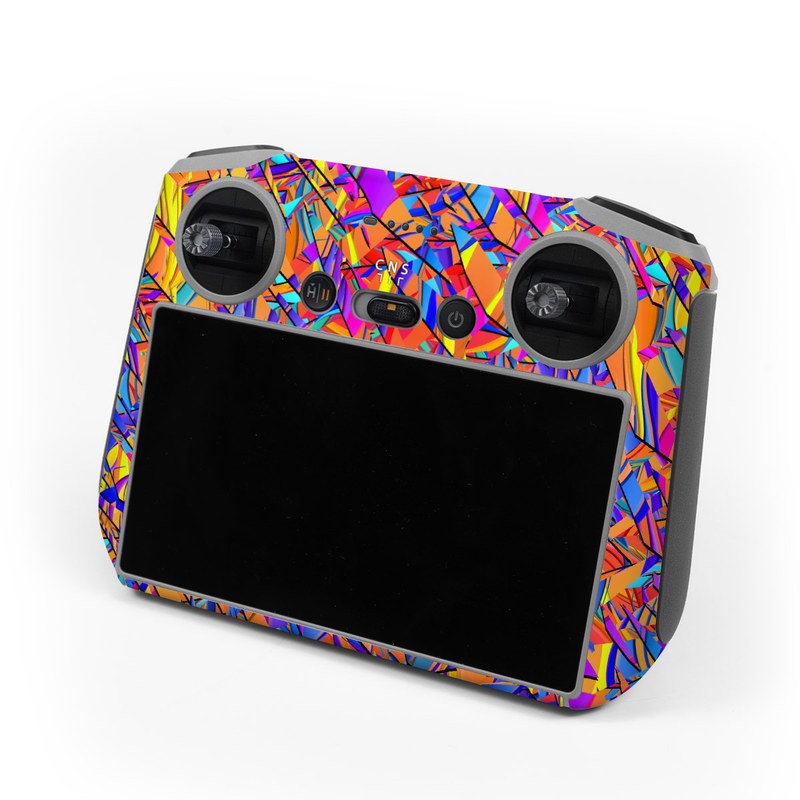 iStyles DJI RC Skin design of Pattern, Psychedelic art, Line, Visual arts, Art, with orange, yellow, blue, purple, pink colors, and tagged with patterns, bright, color, geometry, rainbow, stainedglass.