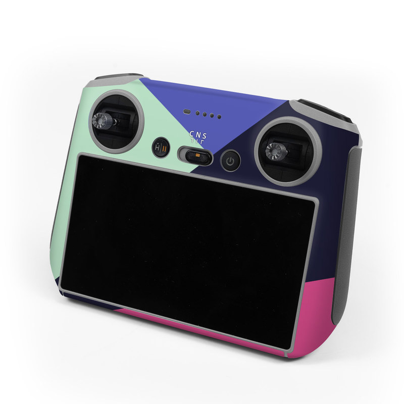 iStyles DJI RC Skin design of Purple, Violet, Line, Magenta, Graphic design, Triangle, Pattern, Design, Material property, Font, with black, blue, green, pink colors, and tagged with patterns, block, blocking, color, colorblock, geometric, shape, simple.