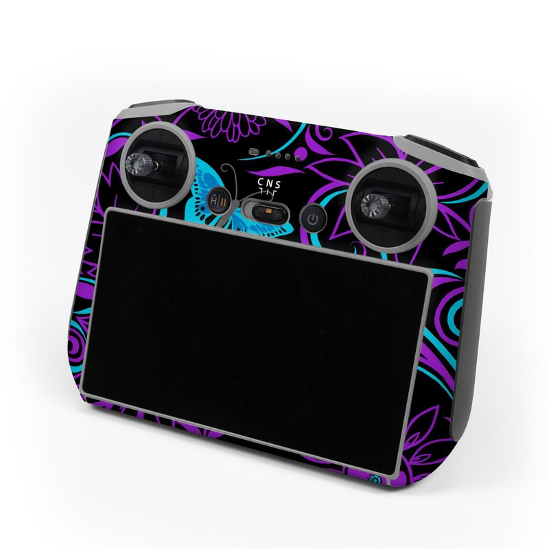 iStyles DJI RC Skin design of Pattern, Purple, Violet, Turquoise, Teal, Design, Floral design, Visual arts, Magenta, Motif, with black, purple, blue colors, and tagged with flowers, patterns.