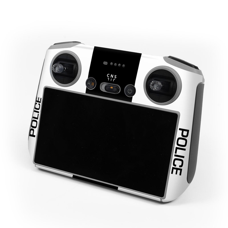 iStyles DJI RC Skin design of Symbol, Badge, Logo, Emblem, Graphics, Design, Shield, with black, white colors, and tagged with lookslike, signs, police, badge, shield, car.