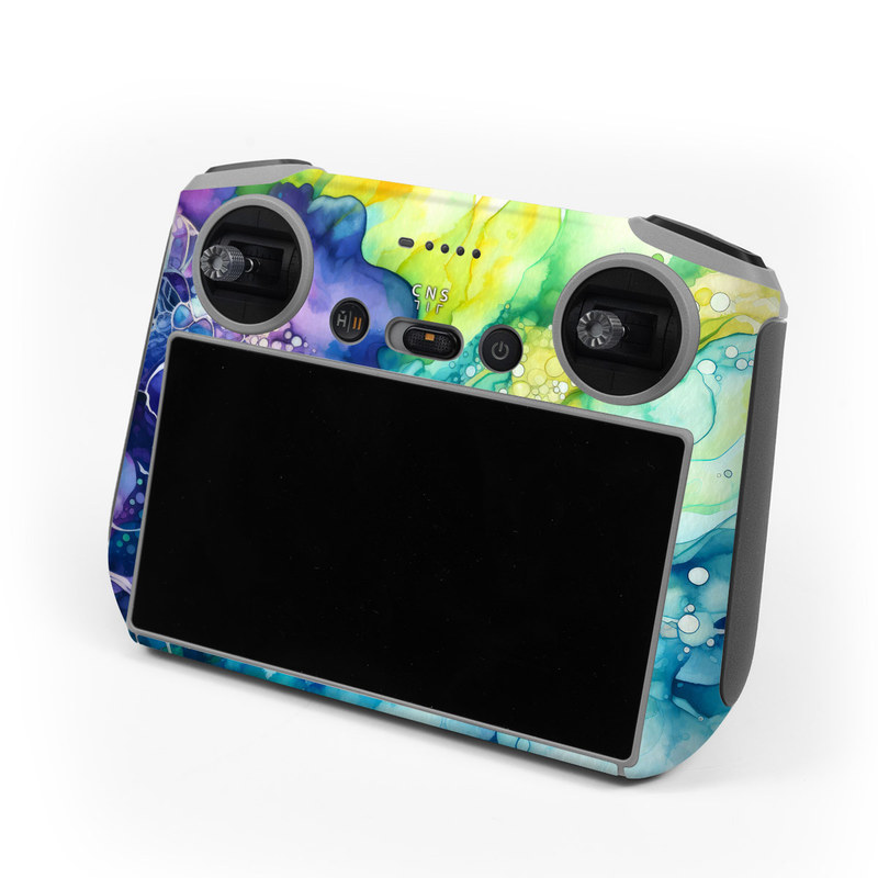 iStyles DJI RC Skin design of Flower, Plant, Art paint, Petal, Blue, Azure, Purple, Art, Paint, Painting, with blue, yellow, green, purple, white, orange colors, and tagged with flowers, fineart, flower.