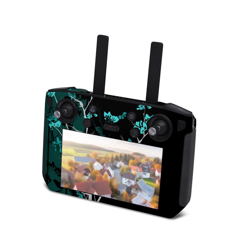 iStyles DJI Smart Controller Skin design of Branch, Black, Blue, Green, Turquoise, Teal, Tree, Plant, Graphic design, Twig, with black, blue, gray colors, and tagged with flowers.