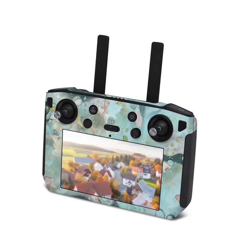 iStyles DJI Smart Controller Skin design of Aqua, Blue, Green, Watercolor paint, Pattern, Turquoise, Organism, Design, Art, Painting, with blue, green, pink colors, and tagged with patterns, abstract, blue, green, organic.