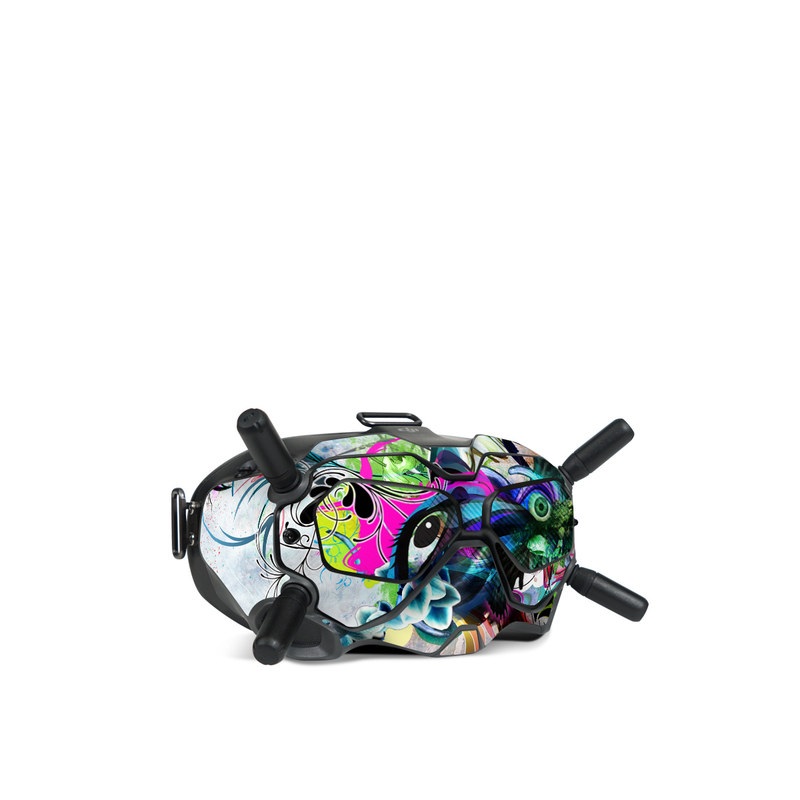iStyles DJI FPV Goggles V2 Skin design of Graphic design, Psychedelic art, Art, Illustration, Purple, Visual arts, Graffiti, Street art, Design, Painting, with gray, black, blue, green, purple colors, and tagged with abstract, animals, flowers.