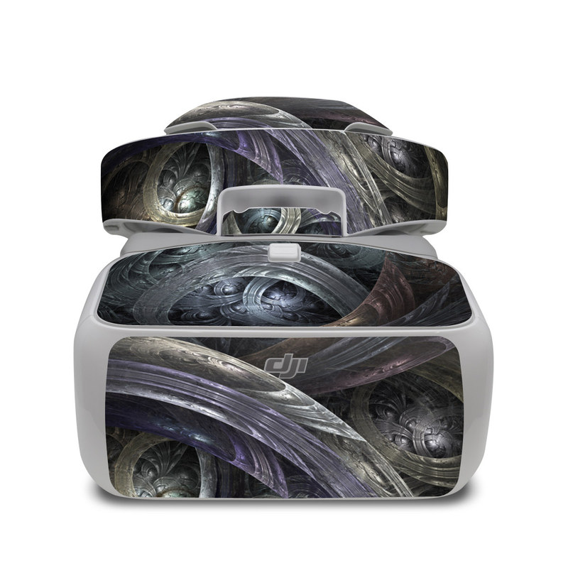 iStyles DJI Goggles 1 Skin design of Fractal art, Graphic design, Art, Cg artwork, Darkness, Circle, Pattern, Illustration, Graphics, Metal, with black, gray, blue colors, and tagged with fractals.