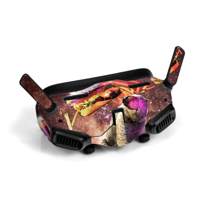 iStyles DJI Goggles 2 Skin design of Circus, Performance, Event, Graphic design, Art, Illustration, Fictional character, with black, white, purple, brown, gray, yellow, green colors, and tagged with animals, fantasy, space, objects, animal, animals, burger, cat, cats, eat, food, galaxy, lasers, space, universe.