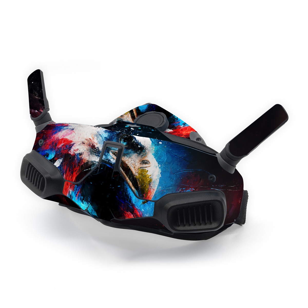 iStyles DJI Goggles Integra Skin design of Bird, Beak, Organism, Art, Feather, Paint, Painting, Accipitridae, Bird of prey, Electric blue, with blue, red, white, black, gray, yellow colors, and tagged with animals, america, usa.