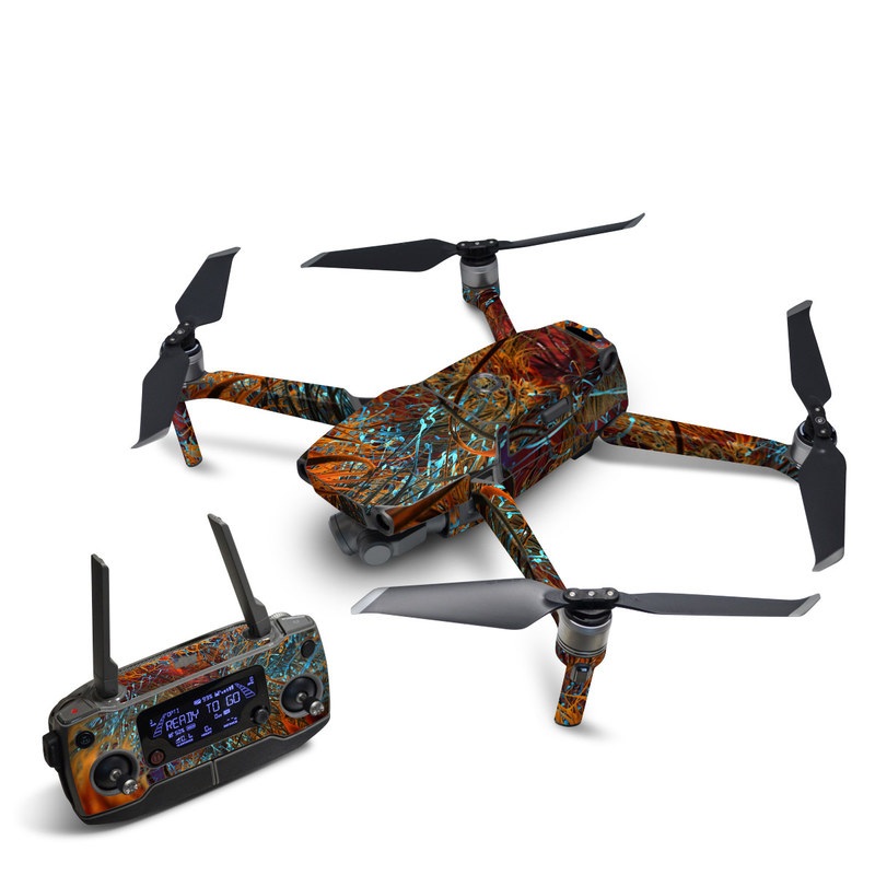 iStyles DJI Mavic 2 Skin design of Orange, Tree, Electric blue, Organism, Fractal art, Plant, Art, Graphics, Space, Psychedelic art, with orange, blue, red, yellow, purple colors, and tagged with patterns.