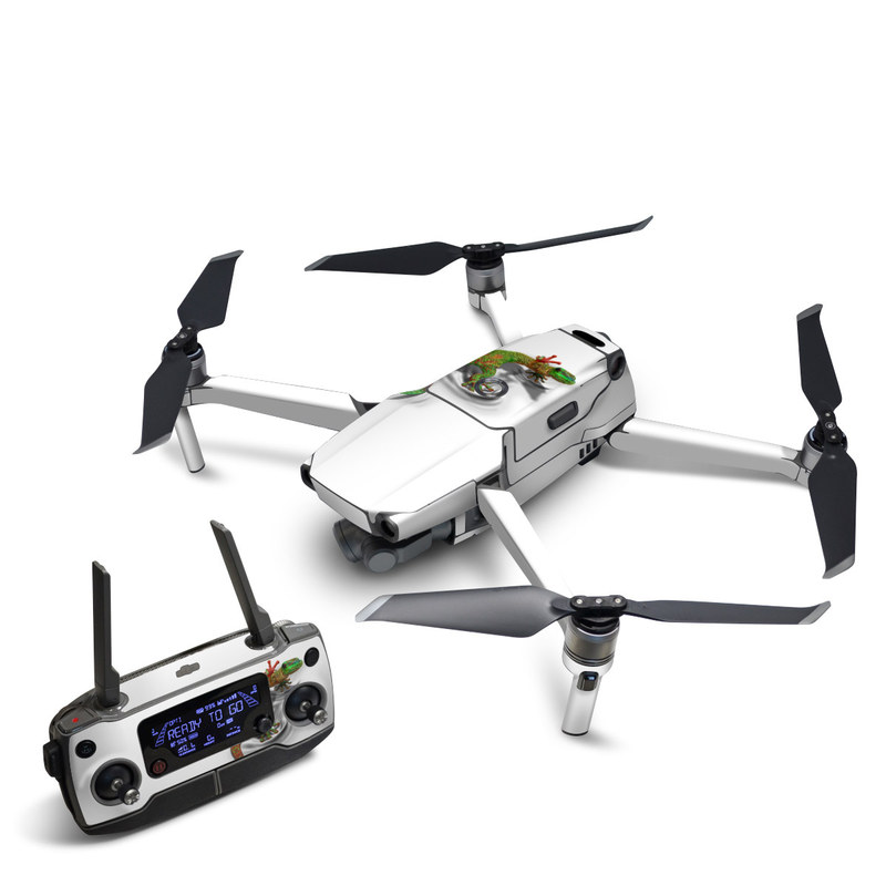 iStyles DJI Mavic 2 Skin design of Lizard, Reptile, Gecko, Scaled reptile, Green, Iguania, Animal figure, Wall lizard, Fictional character, Iguanidae, with white, gray, black, red, green colors, and tagged with animals.
