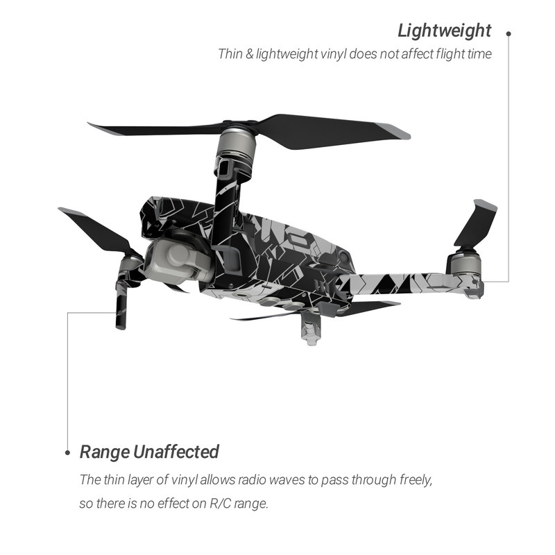 Each Skin covers your DJI Mavic 2, provides low profile protection with no bulk and helps protect from scratches. The unique weaved adhesive allows for fast, easy and accurate application, and goo-free removal.