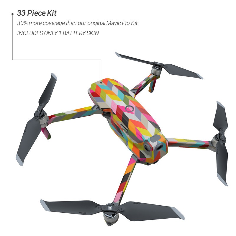 DJI Mavic 2 not included. Design may not align perfectly between Skin pieces (as shown on the product photo). Colors shown may differ from actual color depending on screen calibration.
