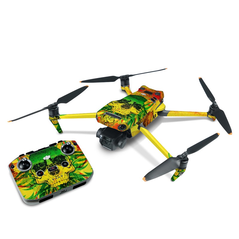 iStyles DJI Mavic 3 Skin design of Psychedelic art, Skull, Illustration, Bone, Art, Graphic design, Visual arts, Poster, Plant, Painting, with green, orange, black, red colors, and tagged with skulls.