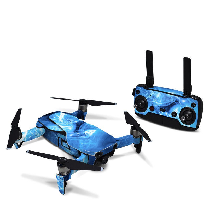iStyles DJI Mavic Air Skin design of Blue, Water, Electric blue, Organism, Pattern, Smoke, Liquid, Art, with blue, black, purple colors, and tagged with patterns.