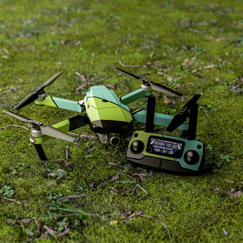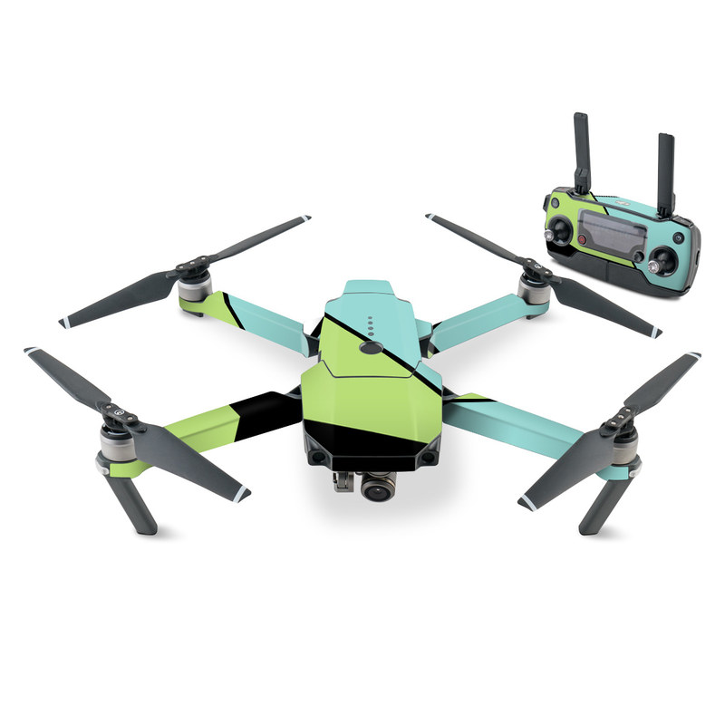 iStyles DJI Mavic Pro Skin design of Green, Line, Blue, Triangle, Design, Parallel, Pattern, Graphic design, Slope, with white, black, green, blue colors, and tagged with patterns, block, blocking, color, colorblock, geometric, shape, simple.