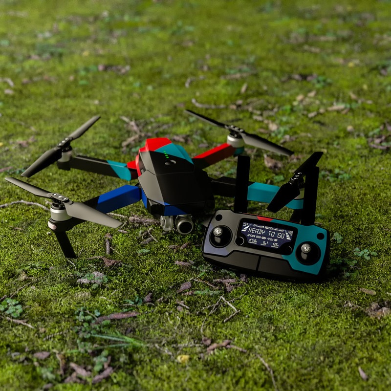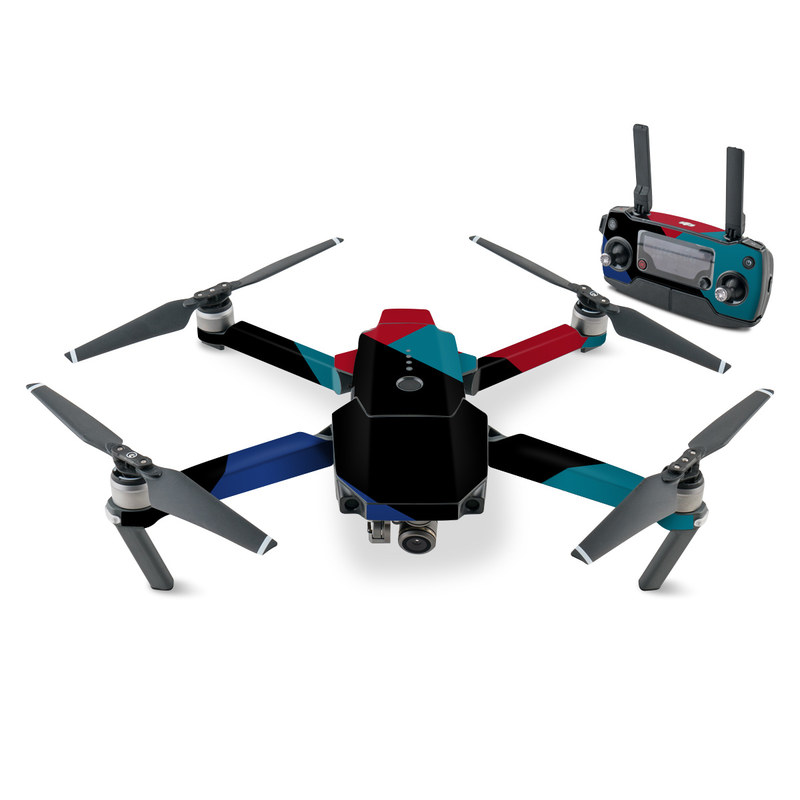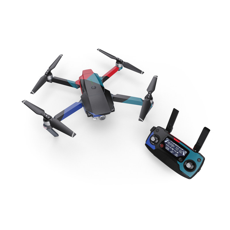 iStyles DJI Mavic Pro Skin design of Blue, Green, Turquoise, Azure, Teal, Electric blue, Line, Pattern, Design, Graphic design, with black, blue, red colors, and tagged with patterns, block, blocking, color, colorblock, geometric, shape, simple.