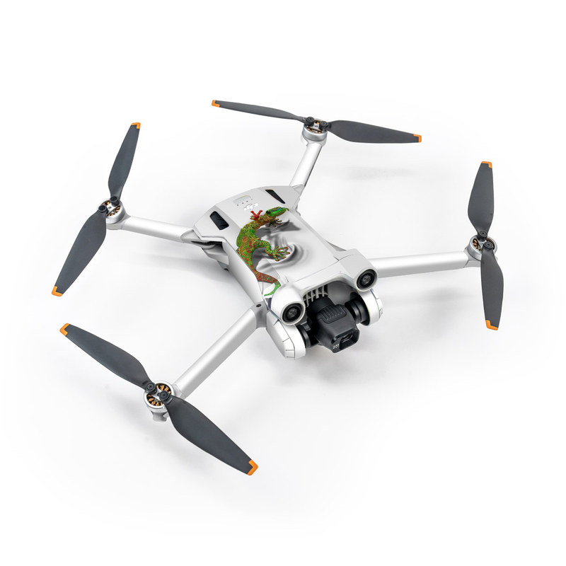 iStyles DJI Mini 3 Series Skin design of Lizard, Reptile, Gecko, Scaled reptile, Green, Iguania, Animal figure, Wall lizard, Fictional character, Iguanidae, with white, gray, black, red, green colors, and tagged with animals.