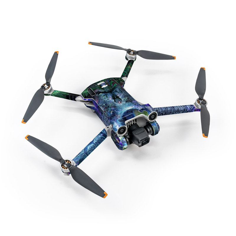 iStyles DJI Mini 3 Series Skin design of Psychedelic art, Fractal art, Art, Space, Organism, Earth, Sphere, Graphic design, Circle, Graphics, with blue, green, gray, purple, pink, black, white colors, and tagged with people, fantasy, space, signs, dmt, fantasy, gratitude, indian, jungle, love, lsd, nativeamerican, nature, peace, plants, ritual, scifi, skulls, space, spirits, spiritual, symbols, trippy, world, worldpeace.