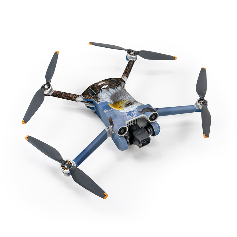 iStyles DJI Mini 3 Series Skin design of Bird, Bald eagle, Bird of prey, Vertebrate, Accipitriformes, Accipitridae, Eagle, Nature, Beak, Kite, with blue, brown, white, yellow colors, and tagged with animals, nature, america, animals, birds, eagle, nature.