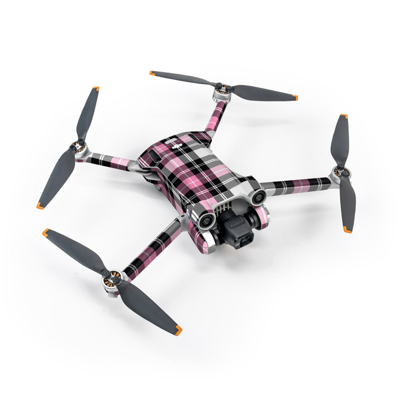 iStyles DJI Mini 3 Series Skin design of Plaid, Tartan, Pattern, Pink, Purple, Violet, Line, Textile, Magenta, Design, with black, gray, pink, red, white, purple colors, and tagged with patterns.