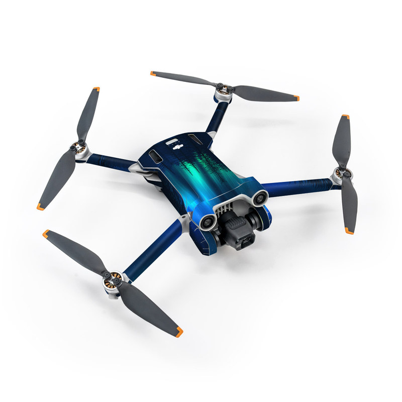 iStyles DJI Mini 3 Series Skin design of Blue, Light, Natural environment, Tree, Sky, Forest, Darkness, Aurora, Night, Electric blue, with black, blue colors, and tagged with nature.