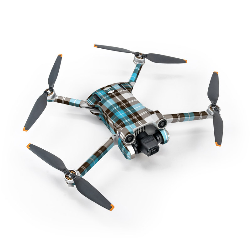 iStyles DJI Mini 3 Series Skin design of Plaid, Pattern, Tartan, Turquoise, Textile, Design, Brown, Line, Tints and shades, with gray, black, blue, white colors, and tagged with patterns.