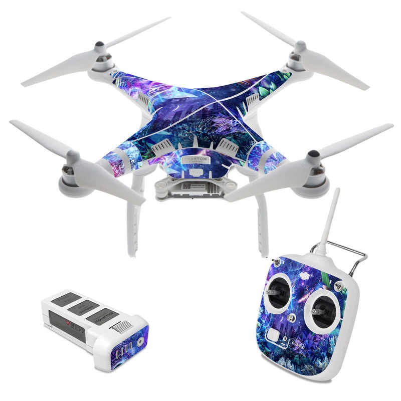 iStyles DJI Phantom 3 Standard Skin design of Blue, Purple, Violet, Lavender, Majorelle blue, Psychedelic art, Electric blue, Organism, Art, Design, with blue, green, purple, red, pink colors, and tagged with nature, flowers, urban.