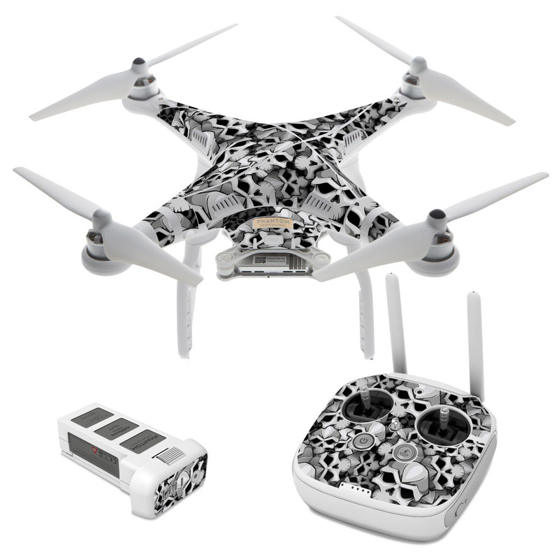 iStyles DJI Phantom 3 Skin design of Pattern, Black-and-white, Monochrome, Ball, Football, Monochrome photography, Design, Font, Stock photography, Photography, with gray, black colors, and tagged with patterns, skulls.