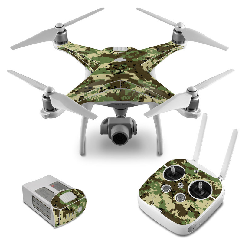iStyles DJI Phantom 4 Skin design of Military camouflage, Pattern, Camouflage, Green, Uniform, Clothing, Design, Military uniform, with black, gray, green colors, and tagged with military, lookslike, patterns.